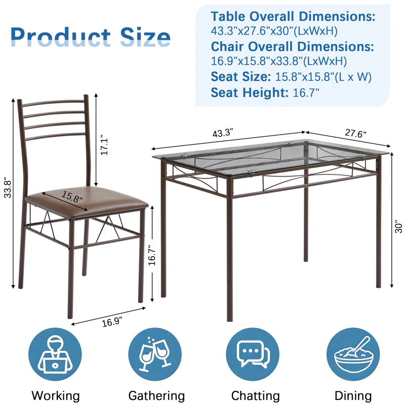 - Easy to Assemble and Maintain: This modern glass kitchen table set comes with all assembled hardware and tools. With illustrated instructions, this contemporary kitchen table and chair set can be assembled within an hour without effort.